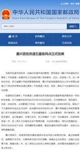 嘉兴邮政速递物流分公司大桥营业部等获评首批快递五星级网点