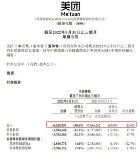 6月2日消息,美团今日披露公司截止2022年3月31日止三个月的未经审核综合业绩。