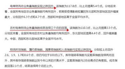 具体来看,5月电商物流总业务量指数实现止跌回升,该指数为117.8点,比上月提高5.4个点。分地区来看,全国所有地区总业务量指数均有所回升,前期受疫情影响较重的东北部和东部地区回升幅度最大,分别回升6.3个点和4.7个点,西部和中部地区高于全国平均水平。