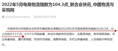 6月2日消息,今日,中国物流与采购联合会和京东集团联合调查的2022年4月中国电商物流指数公布。数据显示,2022年5月中国电商物流指数为104.3点,比上月回升2.1个点。从9个分项指数看,除成本指数有所回落外,实载率指数、库存周转指数、总业务量指数、履约率指数、物流时效指数、满意率指数、农村业务量指数、人员指数均有所回升。