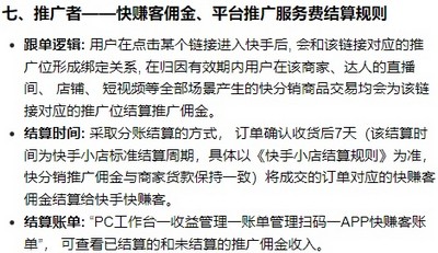 此外,快手电商还对达人佣金、平台推广服务费结算规则;招商团长佣金、平台推广服务费结算规则;快赚客佣金、平台推广服务费结算规则作了详细说明,具体如下图所示。