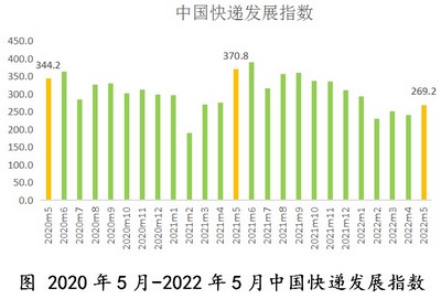 6月4日消息,国家邮政局日前发布了2022年5月中国快递发展指数报告。经测算,2022年5月中国快递发展指数为269.2,环比上升11.6%。其中,发展规模指数、服务质量指数、发展能力指数和发展趋势指数分别为344.7、331.7、198.4和67.2,环比分别上升20.3%、2.1%、16%和2.4%。相比4月份,行业规模有效恢复,质效得到改善,保通保畅工作成效明显。