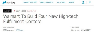 6月4日消息,据外媒报道,沃尔玛宣布计划在美国建立四个新的高科技履行中心,每个中心创造1000多个新工作岗位。