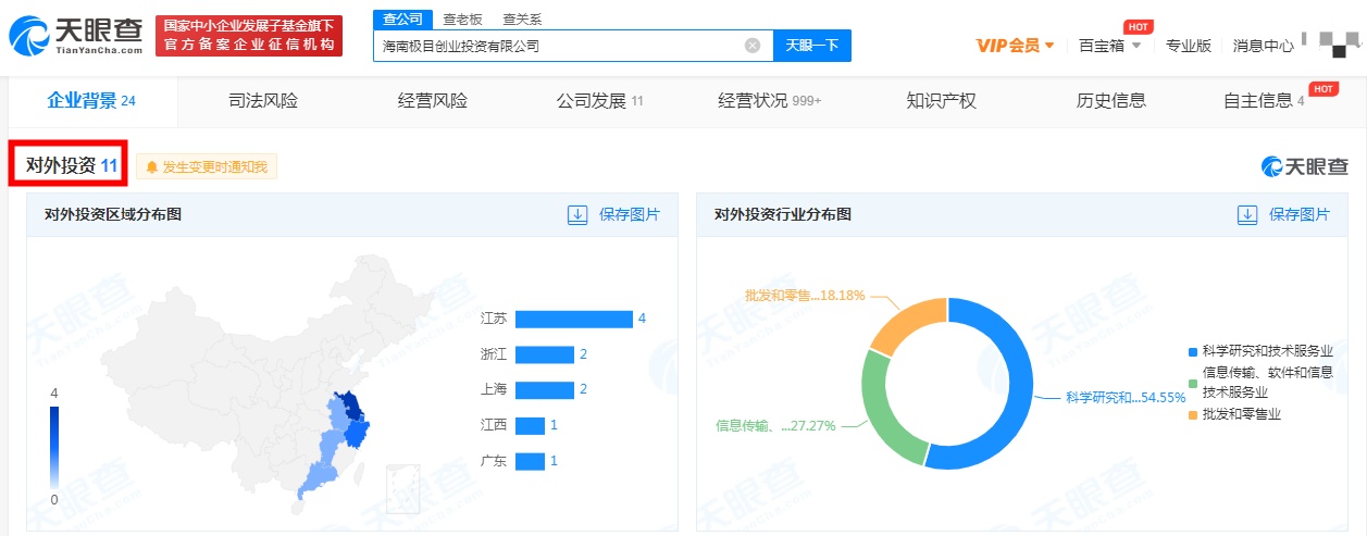 天眼查信息显示,海南极目创业投资有限公司成立于2021年6月,法定代表人为林世伟,注册资本100000万人民币,经营范围含:创业投资(限投资未上市企业);以自有资金从事投资活动。