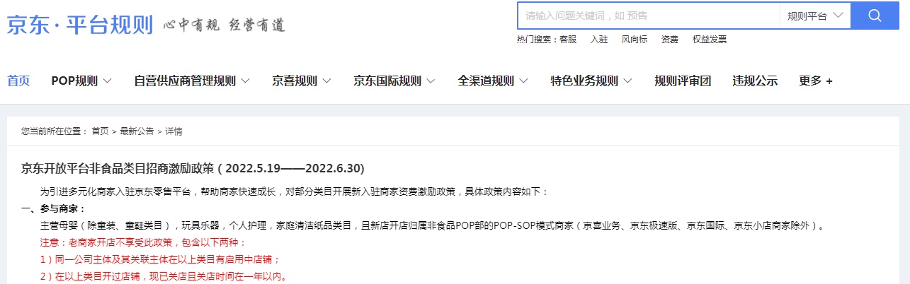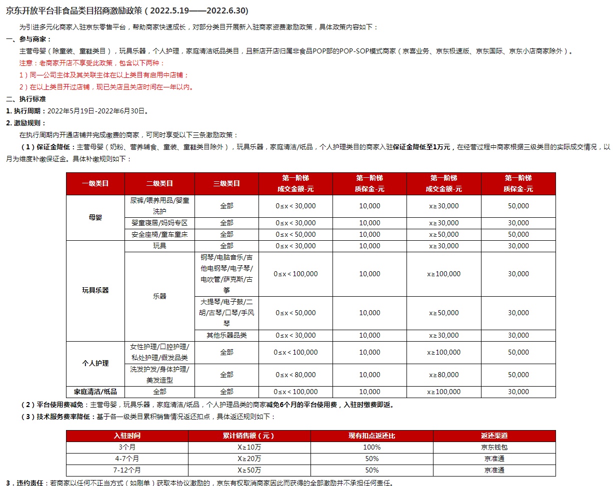 京东发布非食品类目招商激励政策(2022.5.19-2022.6.30)