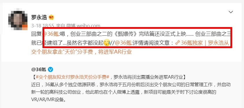 到了今年3月份,据36氪报道,交个朋友将支付给罗永浩天价分手费,而交个朋友则会获得“罗永浩”抖音账号N年的运营权。