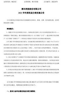 6月8日消息,顺丰控股股份有限公司(以下简称顺丰控股或公司)日前发布2021年年度权益分派实施公告(以下简称公告)。