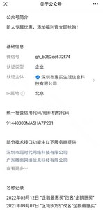 根据“企鹅惠买”微信公众号的认证信息显示,其运营主体是“深圳市惠买生活信息科技有限公司”。信息显示,该项目最早是在去年9月份,以“区域BOSS”的身份进行运营,后在今年5月12日,更名为“企鹅惠买”。