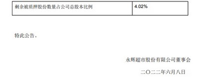 6月8日消息,永辉超市股份有限公司(以下简称永辉超市或公司)日前发布关于股东部分股份解质的公告(以下简称公告)。