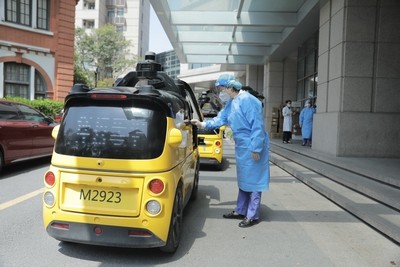 在上海,自动配送车参与了瑞金医院、复旦大学以及绿洲康城、康城半岛等15个社区的抗疫保供工作,为医院医护人员、学校师生、社区居民等配送生活物资,并支持了医院内部核酸检测样本、医护物资等货品的配送工作。