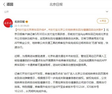 据了解,除昆明外,此前,记者从支付宝方面获悉,目前支付宝APP乘车码已完成北京全市公交地铁功能升级,实现乘车码与健康码信息自动关联。日常习惯使用支付宝APP乘坐公交、地铁等公共交通工具的乘客在升级完成后过闸将自动“无感”核验,快速出行。