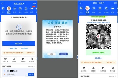 记者打开支付宝APP发现,乘客在首页点击“出行”进入北京公交或地铁乘车码页面将收到自动弹窗提示,根据提示可一步完成关联健康信息的授权。授权完成后,公交地铁乘车码将自动核验健康状态,不需在乘车码与健康码之间进行切换。