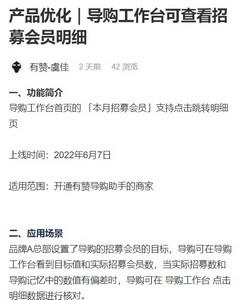 另一项新功能是,导购工作台可以查看招募会员明细,该功能已于2022年6月7日上线,适用范围包括开通有赞导购助手的商家。