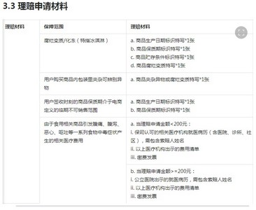 保险理赔方面,商家开通“食安保”服务后,若消费者签收商品90天内发现商品(除冰淇淋外)存在腐烂变质、异物、临期过期问题,签收商品2小时内发现商品存在化冻问题(特指冰淇淋),或签收商品90天内因食用相关商品引发腹痛、腹泻、恶心、呕吐等一系列食物中毒症状就医,可发起理赔申请。