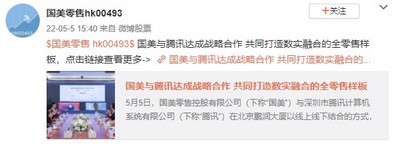 上个月,国美与腾讯签署战略合作协议。双方将充分发挥各自优势,共同打造数实融合的全零售样板。