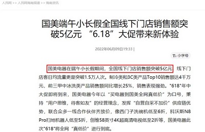 6月10日消息,据人民网报道,国美电器在端午小长假期间,全国线下门店销售额突破5亿元,线下门店客日均流量更是突破1.5万人次。制冷类和3C类产品Top10销售额达4千万元,前三甲中冰洗类产品销售额同比增长25%,销售表现强劲。