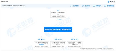 股权穿透图显示,阿里巴巴达摩院(杭州)科技有限公司由阿里巴巴(中国)有限公司全资持股,认缴金额1000万人民币。