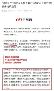 据了解,今年的京东618将帮助更多的城市产业带实现转型升级,助力更多的品牌、商家、中小企业、农户等,在恢复发展的同时加速数智化转型,进而实现发展。
