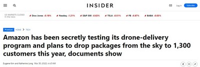 2020年,美国联邦航空局(FAA)给亚马逊颁发了开始运送无人机业务的全牌照。这些年来,Prime Air经历了一些动荡。3月,外媒报道称,亚马逊的无人机在过去13个月中至少坠毁了8次。其中至少有一次坠毁导致了火灾,导致俄勒冈州的一片田地被烧毁。