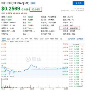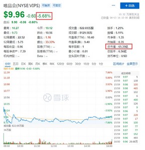 此外,每日优鲜报0.2569美元,总市值6048.75万美元,哔哩哔哩跌10%,达达集团跌近10%,拼多多跌超9%,报54.41美元,总市值687.95亿美元,万物新生跌近9%,携程跌超8%,唯品会、汽车之家跌超5%,唯品会报9.96美元,总市值65.35亿美元,京东跌超4%,报58.93美元,总市值920.34亿美元,BOSS直聘、云集、中通、蘑菇街跌超3%。