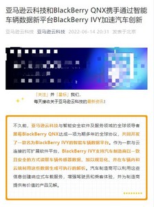 6月15日消息,据亚马逊云科技官微消息,不久前,亚马逊云科技与智能安全软件及服务领域的全球领导者黑莓BlackBerry QNX达成一项为期多年的全球协议,共同开发了一款名为BlackBerry IVY的智能车辆数据平台。