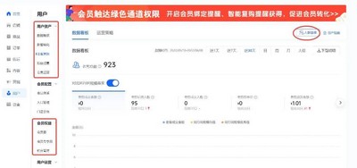 其次,新版抖店全方位沉淀用户资产,全面升级会员体系。商家点击“用户-用户资产”菜单,可以访问全新的用户资产策略平台,基于新客转化、老客复购、粉丝招募、会员运营多维度的人群运营目标,设计包括人群模型、运营场景、投放内容、触达渠道、数据效果等核心功能的精细化运营方案。