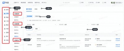 其三,新版抖店采用更为直观的导航菜单布局。在每个一级菜单分类下,将若干个功能相关的二级菜单聚合后进行分组,例如“店铺”下包含以下5个分组,每个分组下并列展现了多个二级菜单,点击每个二级菜单即可访问相应的功能页面。