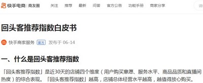 6月15日消息,快手电商日前发布回头客推荐指数白皮书(以下简称白皮书)。
