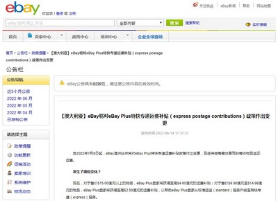 6月15日消息,eBay平台今日发布公告,自2022年7月8日起,eBay澳洲站点将对eBay Plus特快专递运费补贴政策作出变更,现在将按每笔交易而非每件物品返还运费。