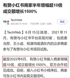 有赞小红书业务负责人表示:“经过半年试跑,有赞服装饰品、滋补养生、美妆等类目接入小红书商家数增幅超10倍, 成交额增长近1500%。”