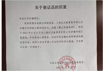 去年年底,“张庭林瑞阳公司涉嫌传销被查处”的话题登上微博热搜。他们所创办的微商品牌“TST庭秘密”,其运营主体上海达尔威贸易有限公司被监管部门查处,财产保全冻结资金高达8亿元人民币。