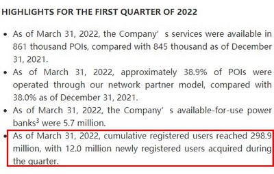 截至2022年3月31日,该公司可供使用的充电宝数量为570万个。截至2022年3月31日,怪兽充电累计注册用户达到2.989亿,本季度新增注册用户1200万。