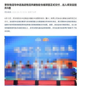 6月15日消息,据京东物流宣布,今日,京东物流与中远海运共建的中波国际物流(嘉兴)有限公司自动化智能仓储项目正式交付。