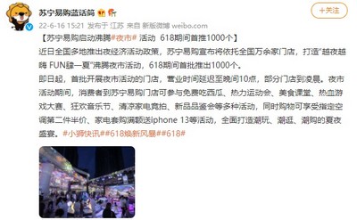 苏宁易购618期间首批推出1000个沸腾夜市