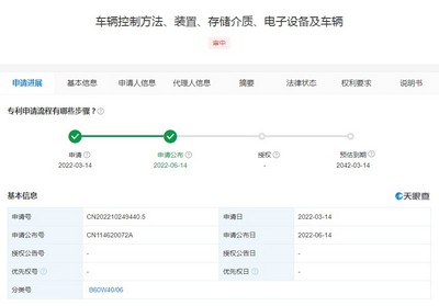 值得一提的是,天眼查信息显示,6月14日,小米汽车科技有限公司“车辆控制方法、装置、存储介质、电子设备及车辆”专利公布。申请公布号为CN114620072A,申请日期为2022年3月14日。