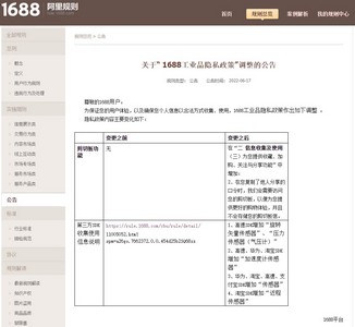 公告称,为保证用户体验,以及确保用户个人信息以合法方式收集、使用,1688工业品隐私政策作出如下调整。