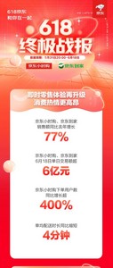 京东小时购、京东到家发布的618终极战报显示,5月31日晚8点至6月18日,京东小时购、京东到家双渠道销售额同比增长77%,6月18日单日交易额突破6亿元,刷新单日峰值纪录。大促期间,通过京东小时购下单的用户数同比去年增长超400%。单均配送时长缩短4分钟。