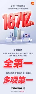 6月19日,小米618终极战报出炉,数据显示,5月31日20点到6月18日23点59分,小米618全渠道累计支付金额突破187亿元。五大平台安卓手机品牌销量/销额全第一,AIoT包揽京东/天猫148项第一,小米之家销额同比增长38%。值得一提的是,全渠道包括小米商城、小米之家、小米有品、各大授权电商及授权零售商等。
