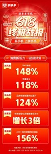 6月19日,拼多多还发布了618手机战报。截至18日23:59的数据显示,平台手机类目在618期间继续保持了强劲势头,全类目销售额同比增长148%,订单量同比增长118%。