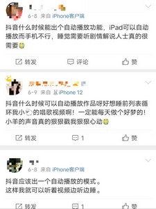 对于该功能,记者向抖音客服进行了咨询。抖音客服表示:自动播放的话,目前是属于小范围测试中,和系统没关系,所以会出现有的用户有(自动播放下一个视频功能),有的用户没有。而在一些社交平台上,不少的抖音用户都期待抖音App能够推出“自动播放”功能,一方面可以帮助他们助眠,另外一方面,也能够解放自己的双手,获得更好的用户体验。
