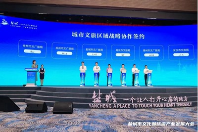 其中,盐城市文广旅局与南京市文旅局、苏州市文广旅局、常州市文广旅局、湖州市文广旅局、安庆市文广旅局签订城市文旅区域战略合作协议。大会现场还举行了“文旅+传媒、研学”产业创新融合签约、长三角客源地合作签约等环节。