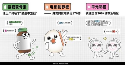 受00后用户喜爱的健康品电动刮痧板,成交额同比增长近170倍;天猫健康的平光彩瞳四成购买者是00后,已销往全国300+城市及地区。