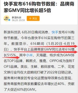 快手616购物节数据 品牌商家GMV同比增长超5倍