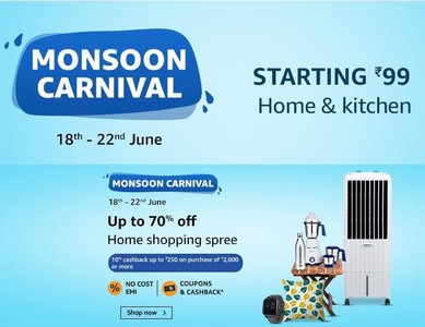 据报道,在活动期间,亚马逊将为家庭和厨房电器、家居装饰、家具、家庭装修、运动和汽车、照明、玩具类别的产品提供高达70%的折扣。此外,在活动期间购买物品的买家还可以获得10%的现金返还。购买价值超过2000印度卢比或以上的商品,最高可获得250印度卢比的现金返还。