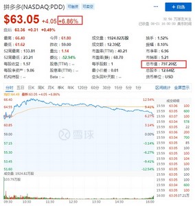 同时,寺库跌近9%,京东、新东方、万物新生跌超3%,京东报63.65美元,总市值994.05亿美元。
