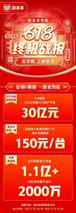 据拼多多618大促的项目负责人介绍,今年618平台对手机产品的补贴力度远超往年,已累计为用户节省30亿元。