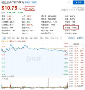 6月22日消息,热门中概股周二收盘普遍走高。其中,逸仙电商涨近20%,报0.9400美元,总市值5.94亿美元,每日优鲜涨超15%,趣店涨超11%,BOSS直聘、叮咚买菜涨超10%,携程、优信涨超8%,拼多多涨近7%,报63.05美元,总市值797.20亿美元,阿里巴巴、新氧、达达集团涨超4%,阿里巴巴报106.39美元,总市值2884.14亿美元,唯品会、蘑菇街、百世集团、途牛涨近2%,唯品会报10.75美元,总市值70.53亿美元。