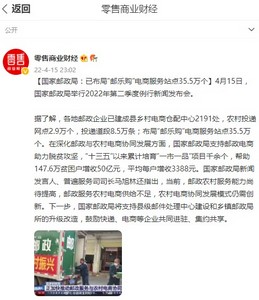 据了解,各地邮政企业已建成县乡村电商仓配中心2191处,农村投递网点2.9万个,投递道段8.5万条;布局“邮乐购”电商服务站点35.5万个。在深化邮政与农村电商协同发展方面,国家邮政局支持邮政电商助力脱贫攻坚,“十三五”以来累计培育“一市一品”项目千余个,帮助147.6万贫困户增收50亿元,平均每户增收3388元。
