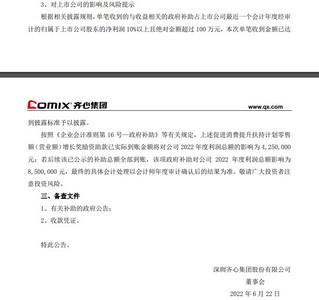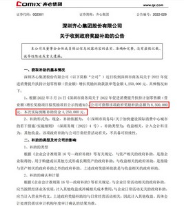 6月22日消息,昨日晚间,深圳齐心集团股份有限公司(简称“齐心集团”或“公司”)发布关于收到政府奖励补助的公告。