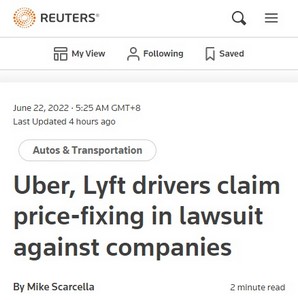 6月22日消息,据路透社报道,当地时间周二,美国网约车公司Uber和Lyft的司机在加州法院提起反垄断诉讼,指控两家公司以不公平的方式操纵乘客的打车价格。